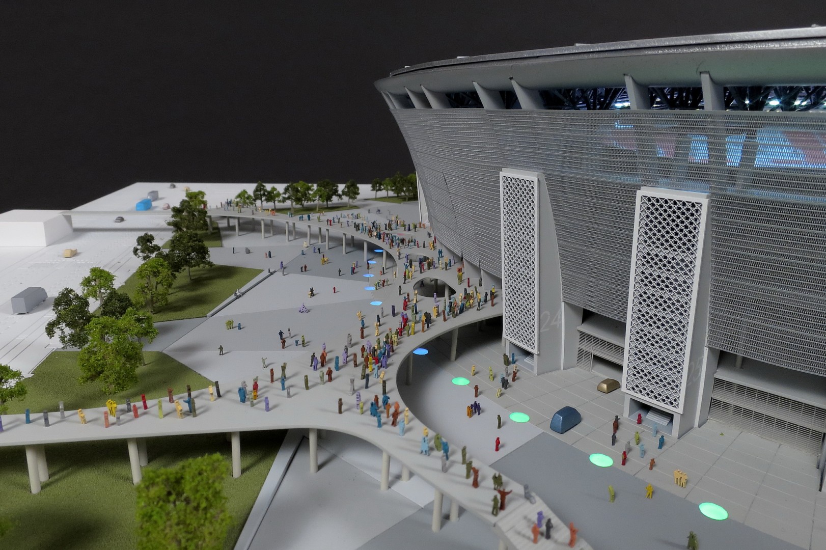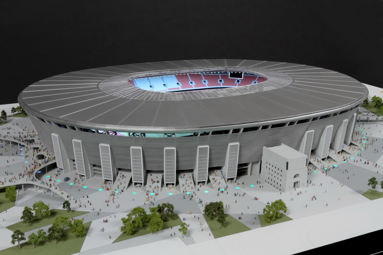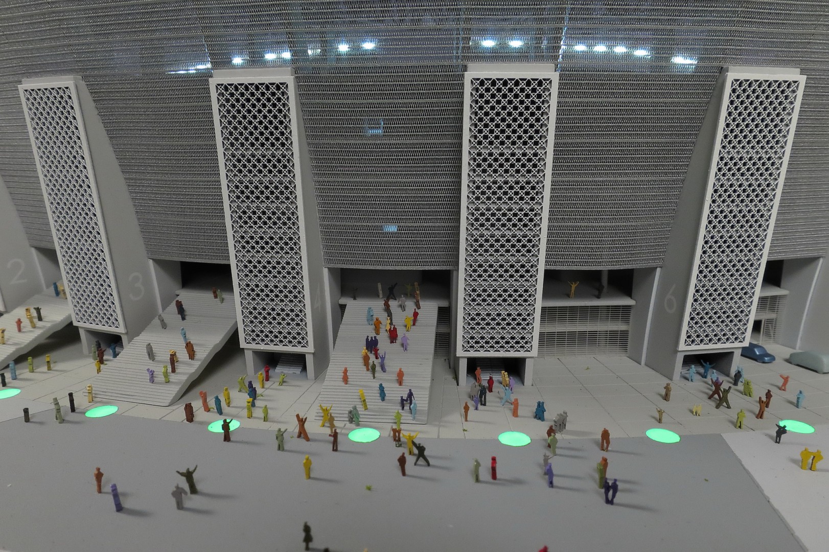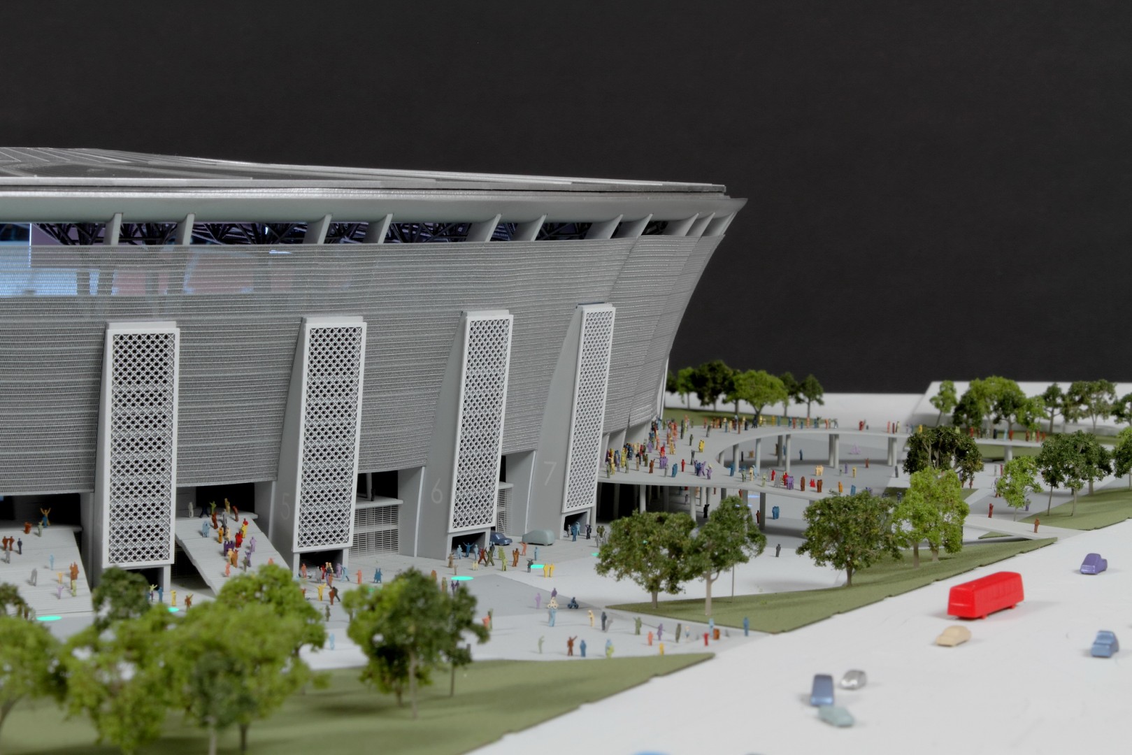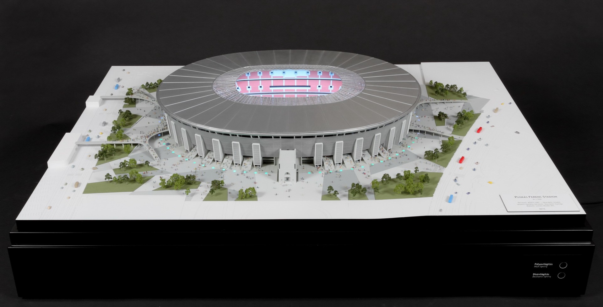A tervezés több verziót is megért, amiket a változó körülményekhez megfelelően nekünk is le kellett követni makettben. Sajnos a költségcsökkentés áldozataként már nem készül el az eredetileg legfelső szintre megálmodott fedett futópálya, de az épület jellegzetes karaktere megmaradt.
